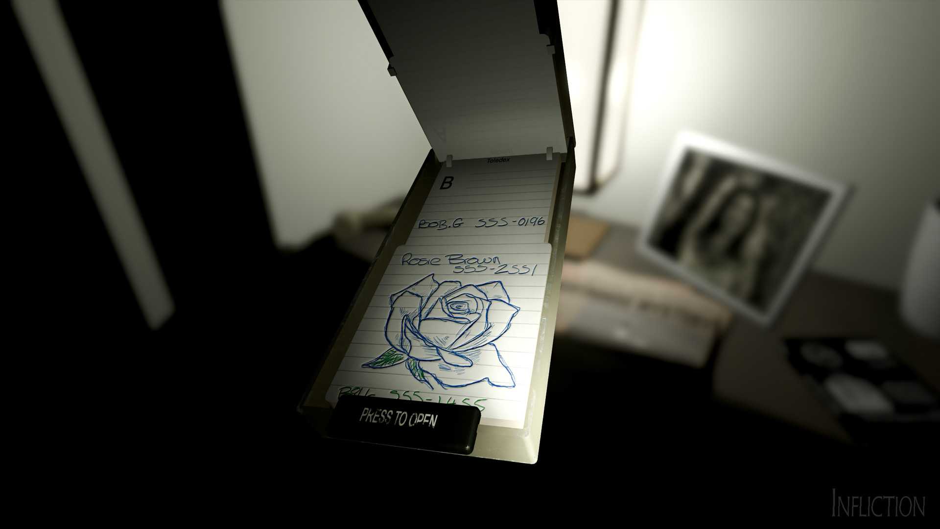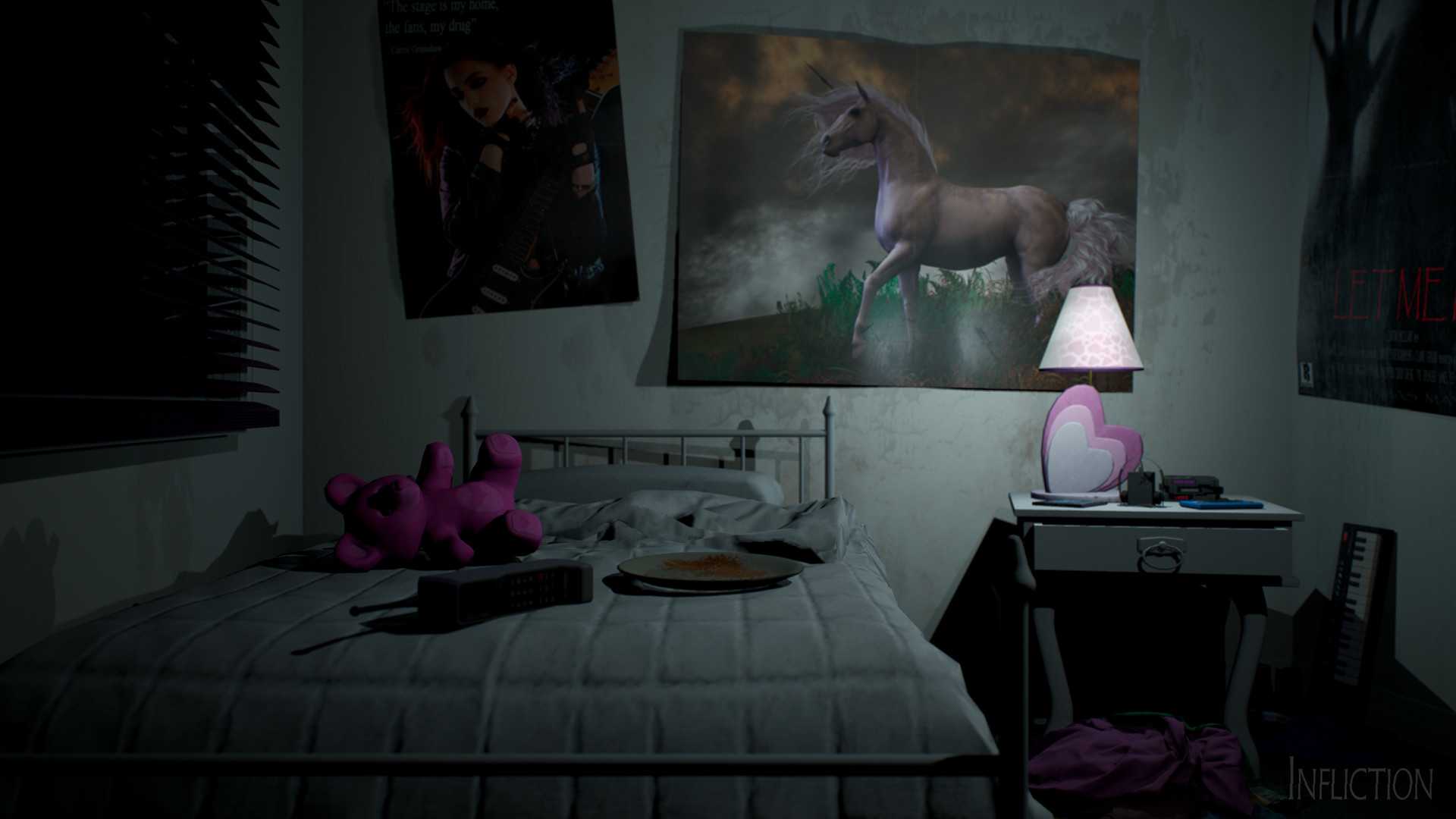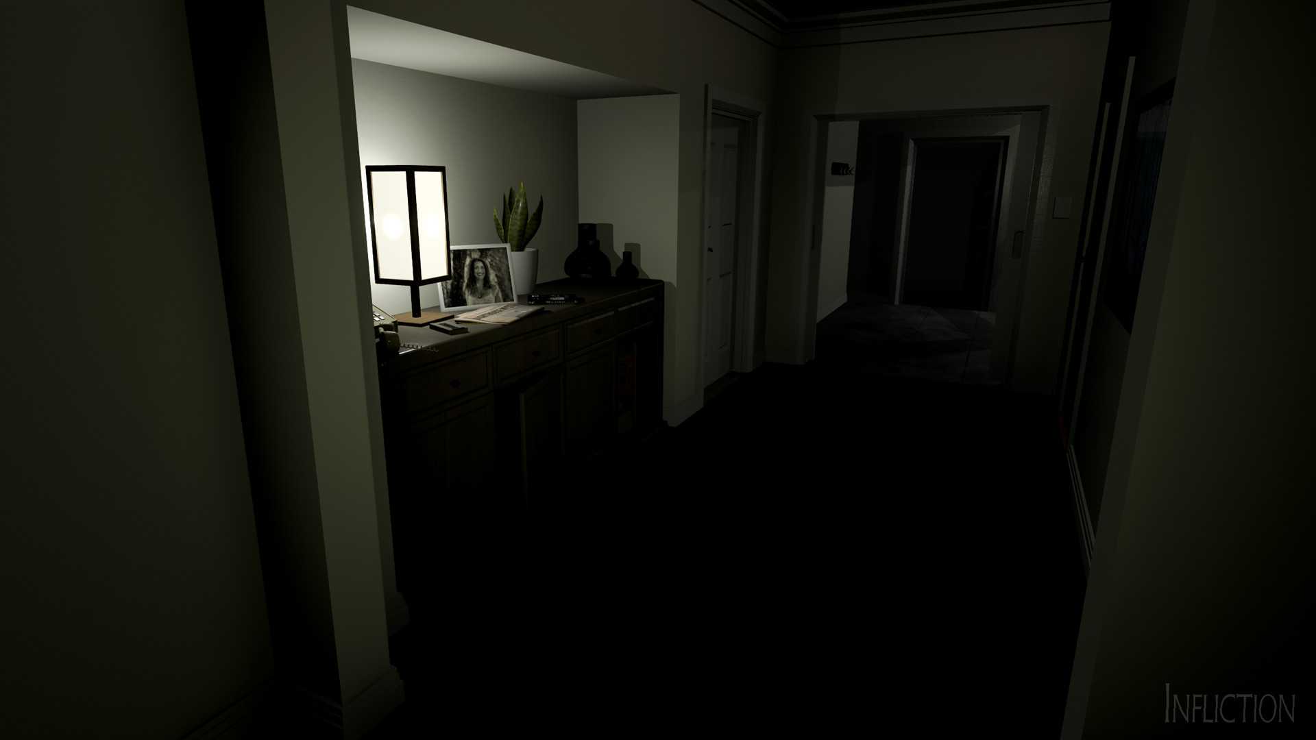 《刑罚(Infliction)》是一款由Caustic Reality独立制作并发行的恐怖冒险解谜类游戏。本作是一个交互式的噩梦,一个通往破碎家庭黑暗秘密的旅程。玩家将漫步在一个曾经幸福的家庭令人心碎的残余物中,拼凑线索,试图弥补过去的罪过。一直有一股邪恶的力量尾随着你,寻找暴力报复。