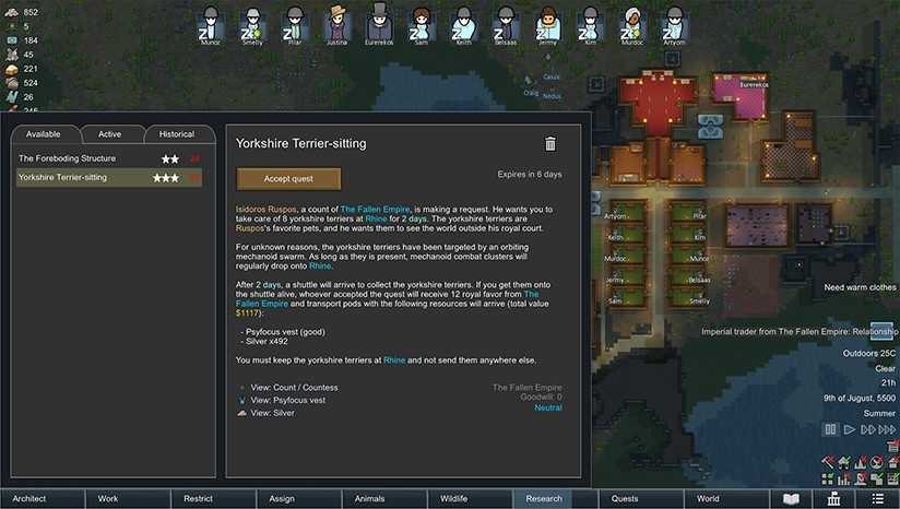 《边缘世界:皇权》(rimworld)是一款模拟经营类的游戏,游戏的主要目标是建造宇宙飞船来逃离当前的星球,玩家将以俯视的视角操控小人进行各种建设、生产以及探索活动,而在建设基地的过程中小人还会遇到各种敌人的袭击,在游戏的中后期我们还可以开设多个分基地。虽然游戏的容量只有几百兆,画面也比较简单,但可玩性却是非常高的,不管你是选择和平发展还是武力入侵,都能在其中找到乐趣,此外游戏还支持各种mod,诸如克苏鲁、中世纪、魔法世界等,对游戏的玩法进行了极大的丰富。