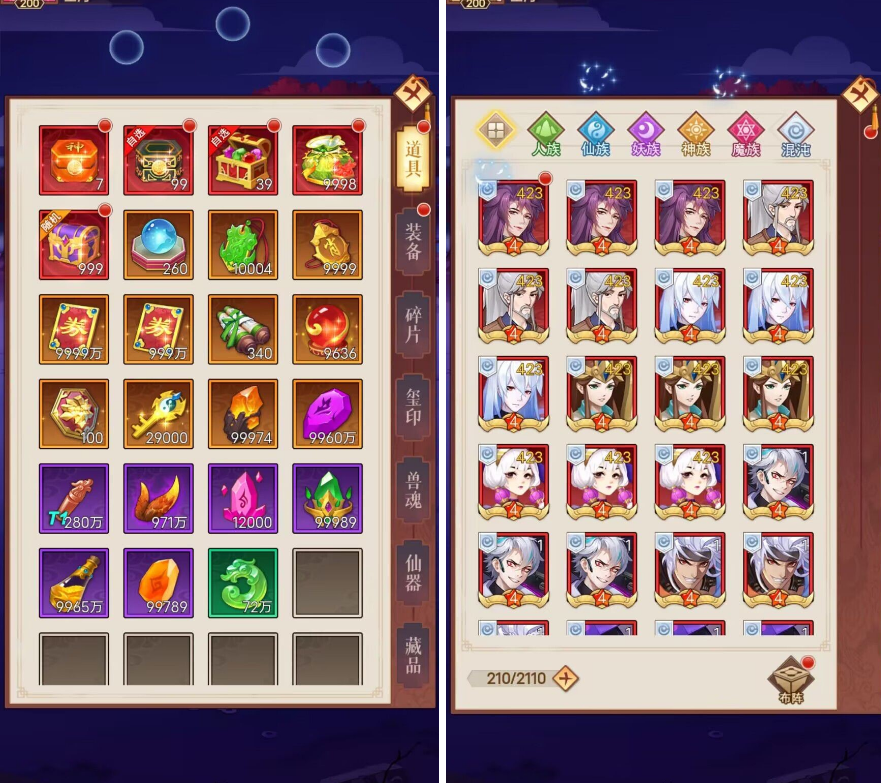 8.人族,仙族,妖族,神族,魔族第二技能满境界情况下整体加强150%