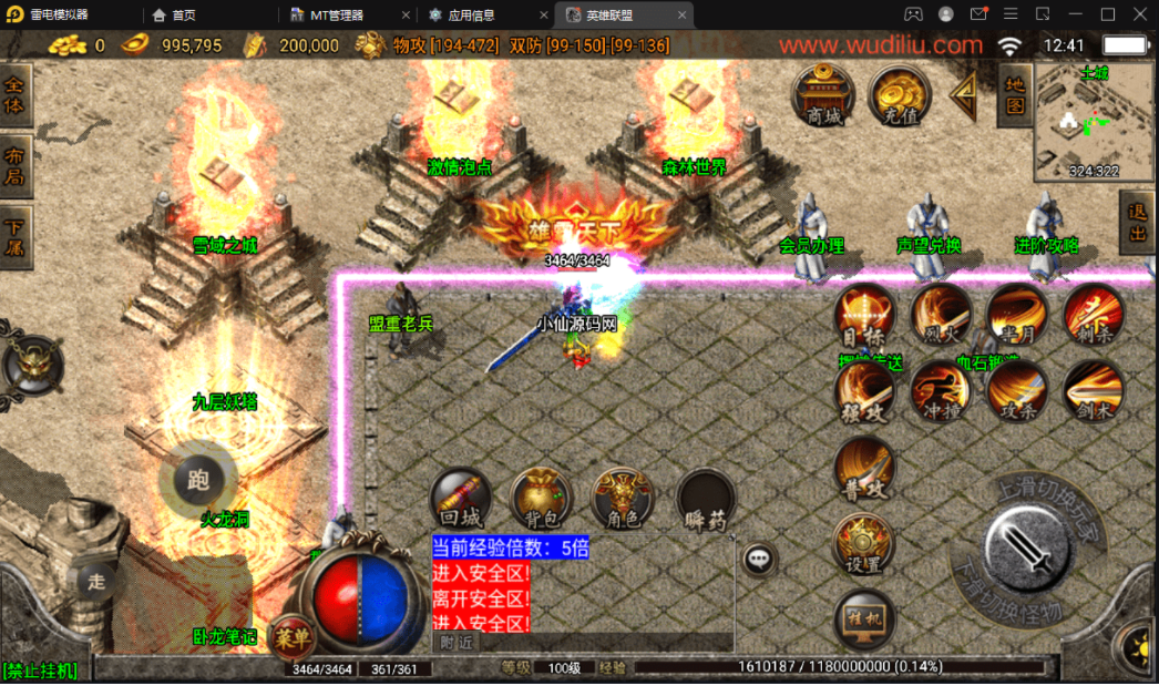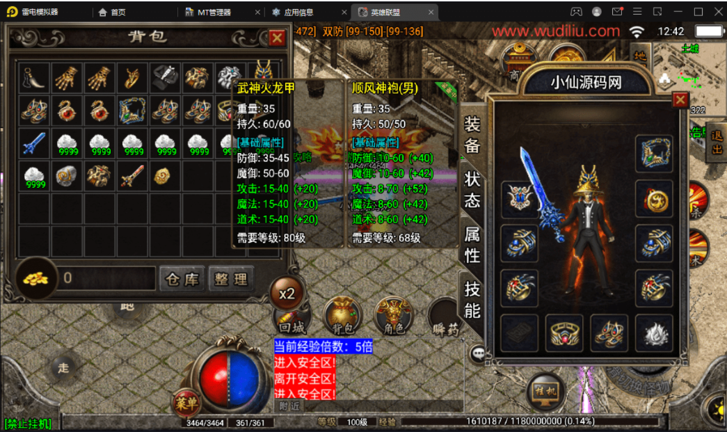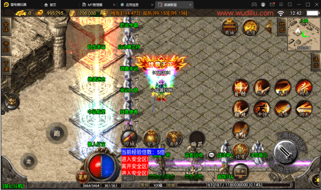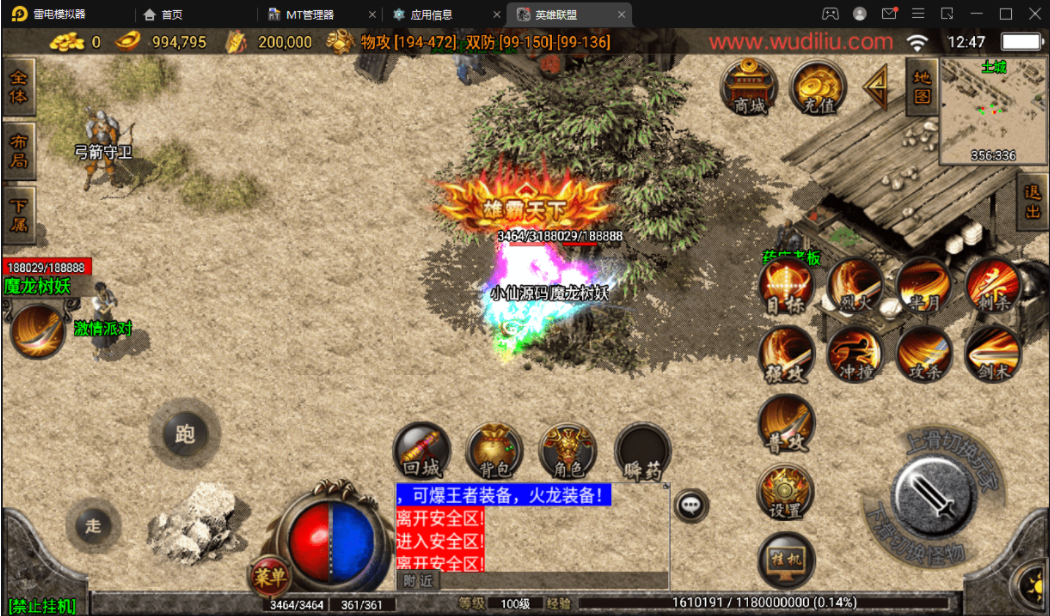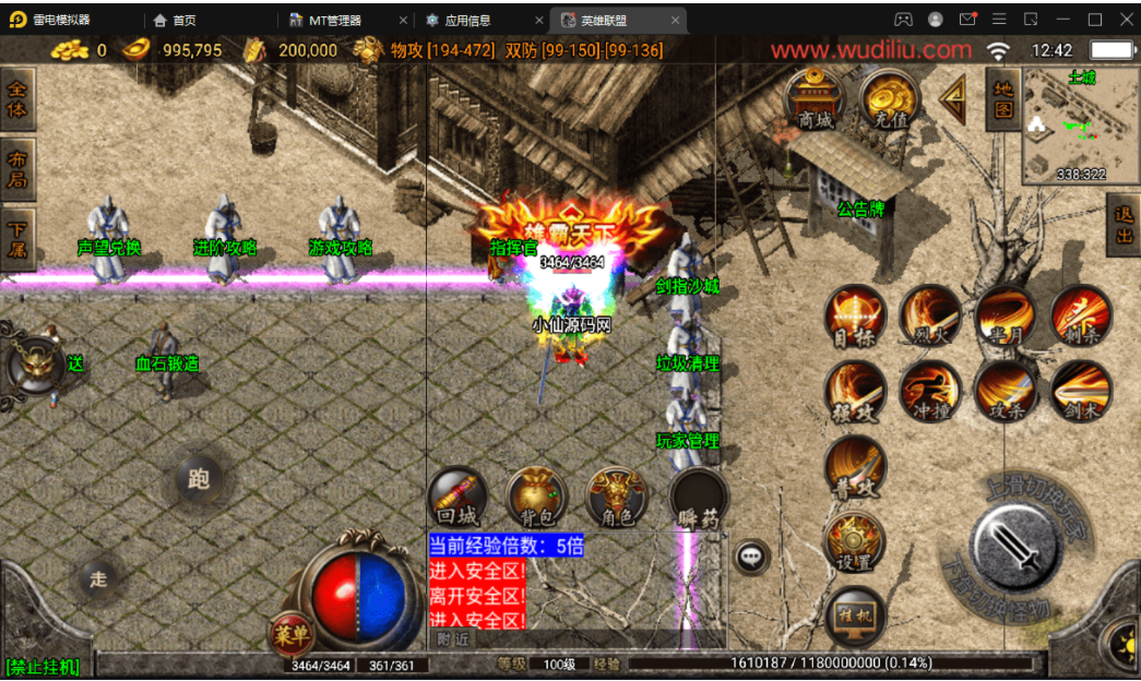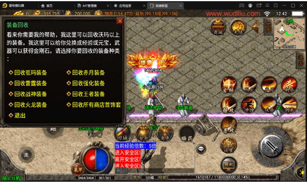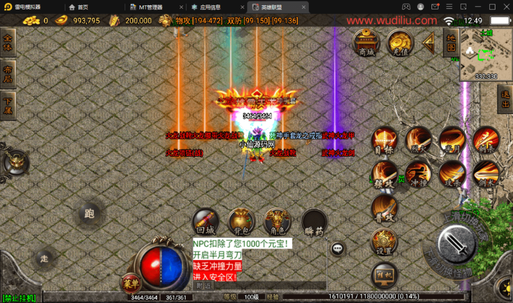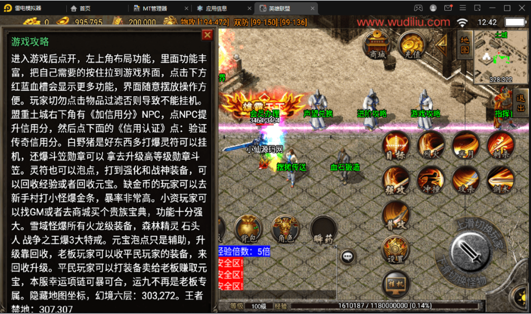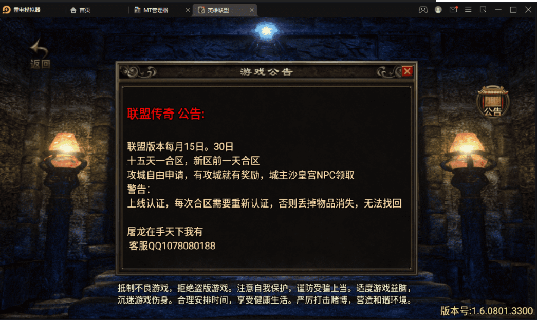 版本属于早起的王者火龙复古类型,里面有2个NPC有错误,分别是雪域之城,这个没有传送功能,你们需要自己打开NPC脚本文件去看,是不是隐藏了,还有一个就是战法补偿,也是爆出,无法正常使用,不会修复的可以直接隐藏。