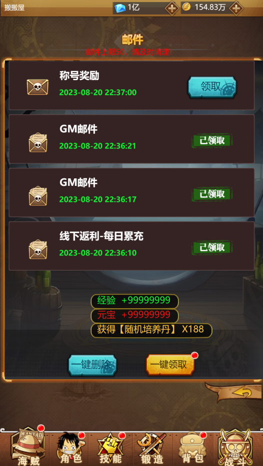 稀有卡牌手游【伟大航路之新世界内购版】最新整理Linux一键全自动搭建脚本+安卓+多区跨服+CDK/GM授权全物品后台+手工端