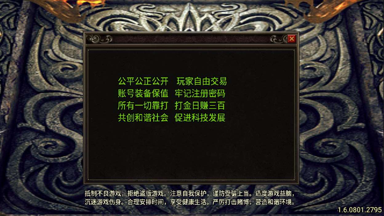 需要白猪授权,没有的不要买,不开服也没必要 此端为开服端,已经配置好了对接平台,为天天支付,修改为自己的账户信息即可 装备依次为新手-普通-沃玛-祖玛-赤月-龙鳞-昆仑-水中花-藤域-铜域 武器依次为新手-普通-修罗-炼狱-裁决-屠龙-青龙斩-绿玉裁决-翡翠龙刀-破天 所有装备分为三个等级I、II、III,等级越高品质越好 武器合成到III级后,自动分支为5大系:金-木-水-火-土 更多请自行体验 资源下载此资源下载价格为30金币立即购买(VIP 8折、终身VIP免费)立即升级