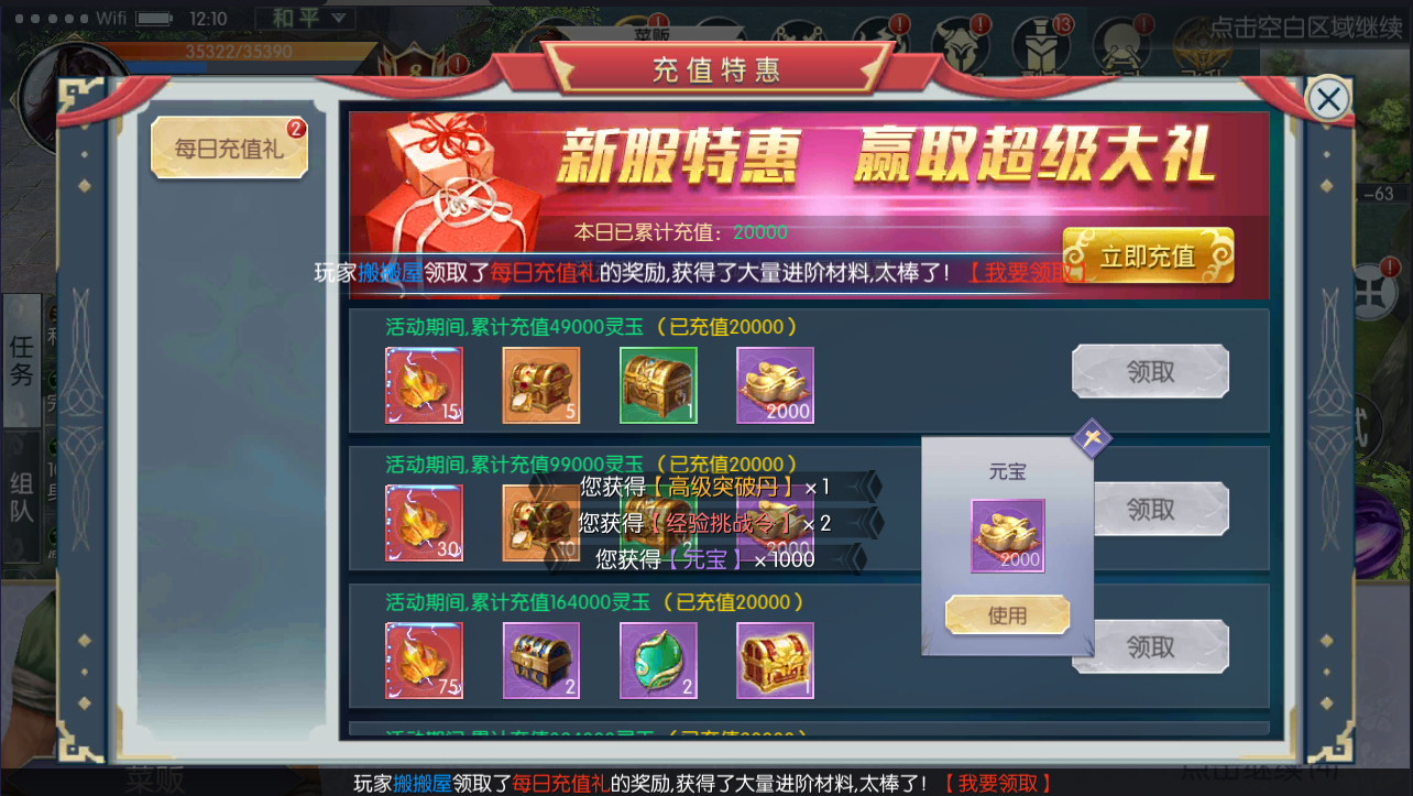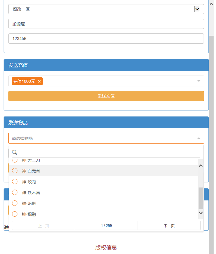 14.更新所有boss掉落648真冲卡,仙装衣服武器兑换券等