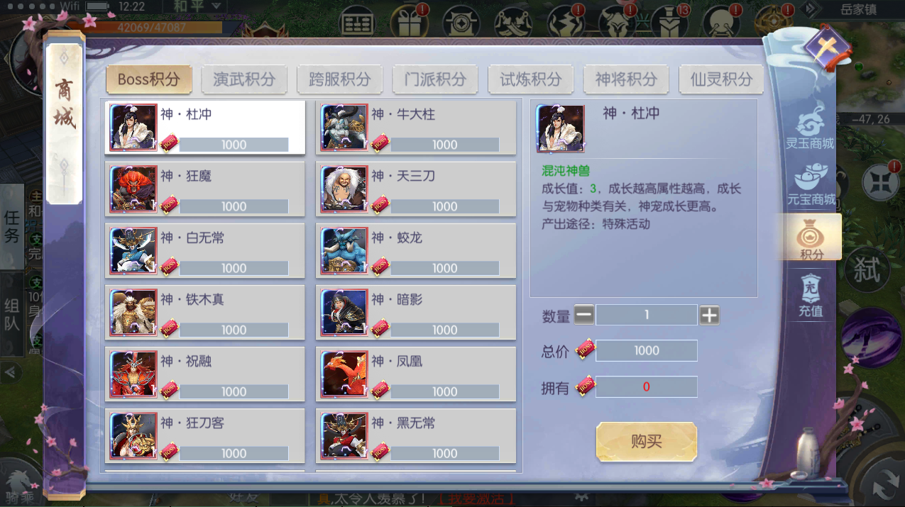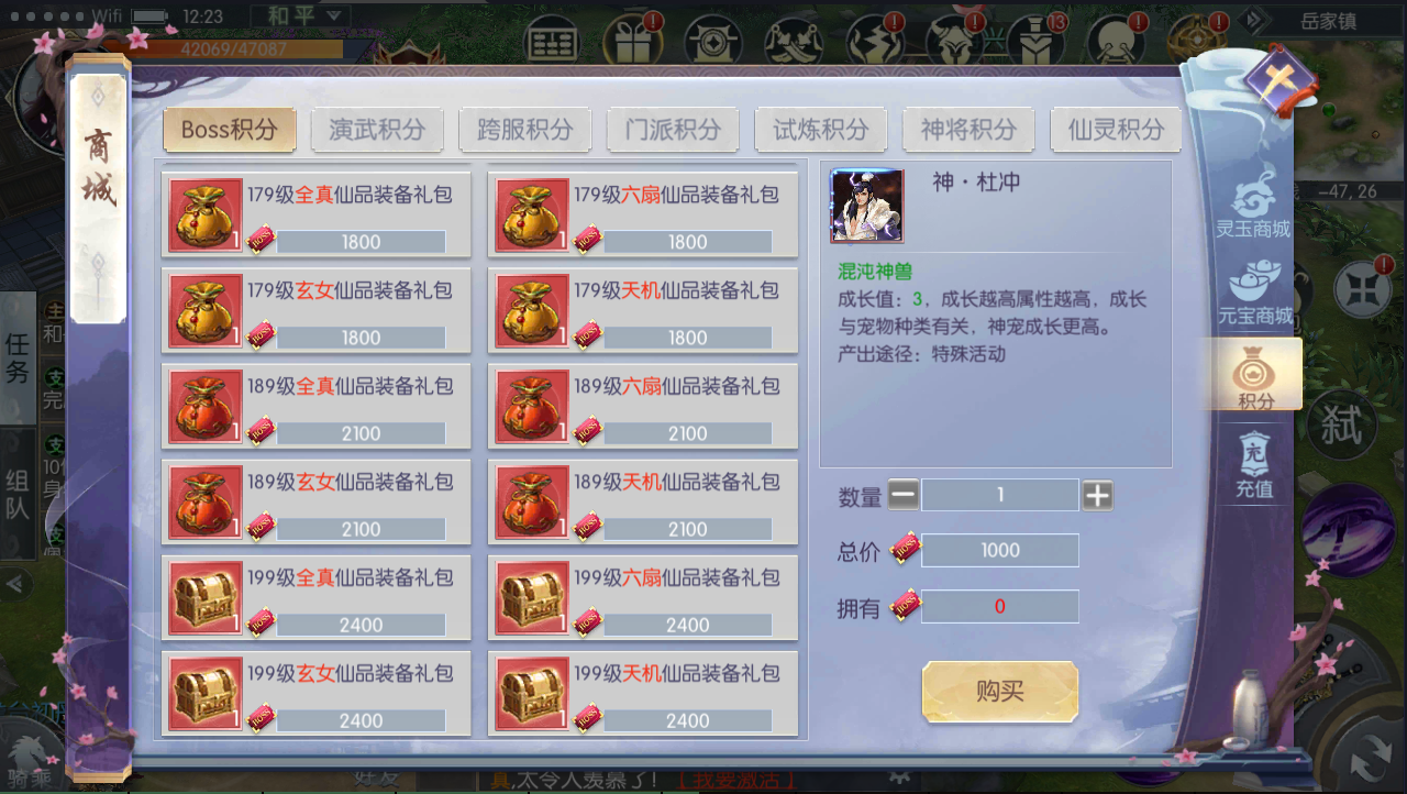 15.更新boss积分商店更新上架所有魔宠物,月卡,648充值等等