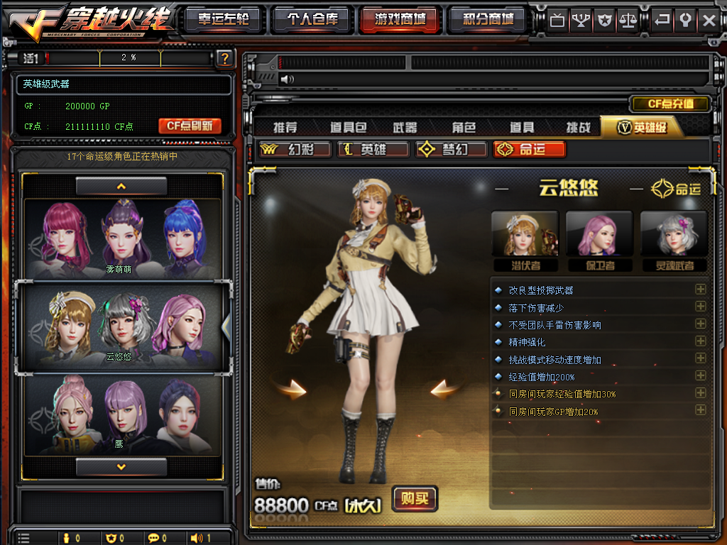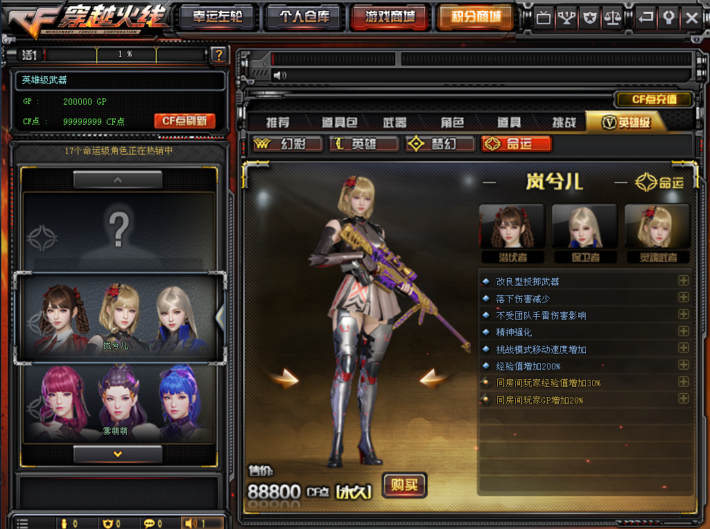 部分命运角色需要888888888点券购买,自己后台刷,别刷爆了,如果号里有很多点券点击购买时看结算后余额多少点券,刷余额点券即可