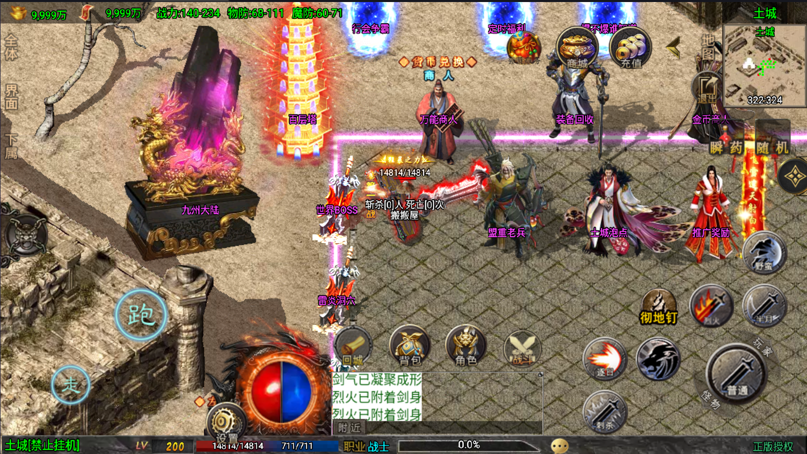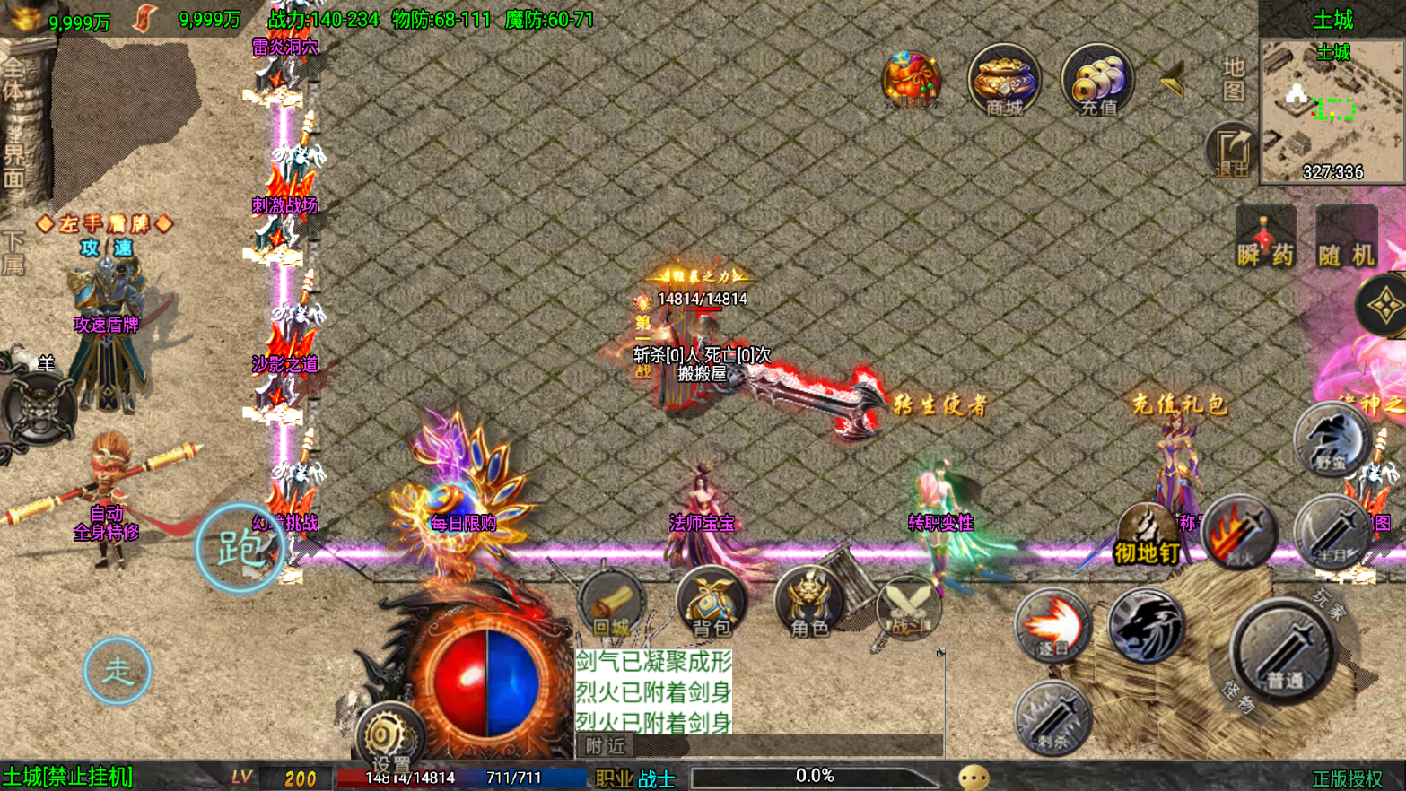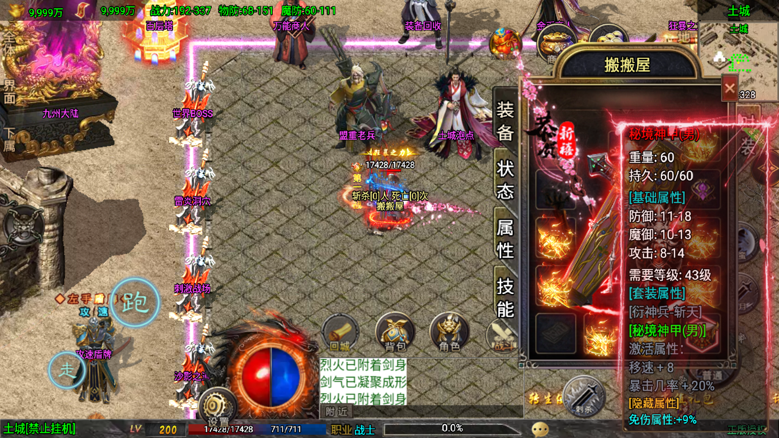 此版在原有的基础上加了新装备,动态NPC,称号等,替换了攻速网关。简单测试有烈战和骷髅的影子不错的版本