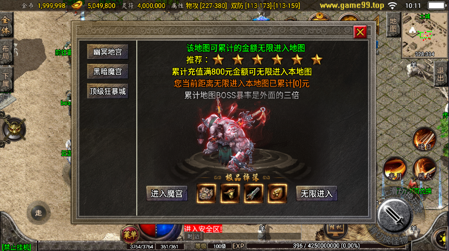 版本里面的终极装备就是星王剑甲,有属性+6,其他的首饰什么的都是+4的,版本默认没有使用任何收费插件,总的来说,是一个复古耐玩情怀类型的版本,其他的细节方面。喜欢的兄弟自行进入游戏深度测试。 资源下载此资源下载价格为30金币立即购买(VIP 8折、终身VIP免费)立即升级