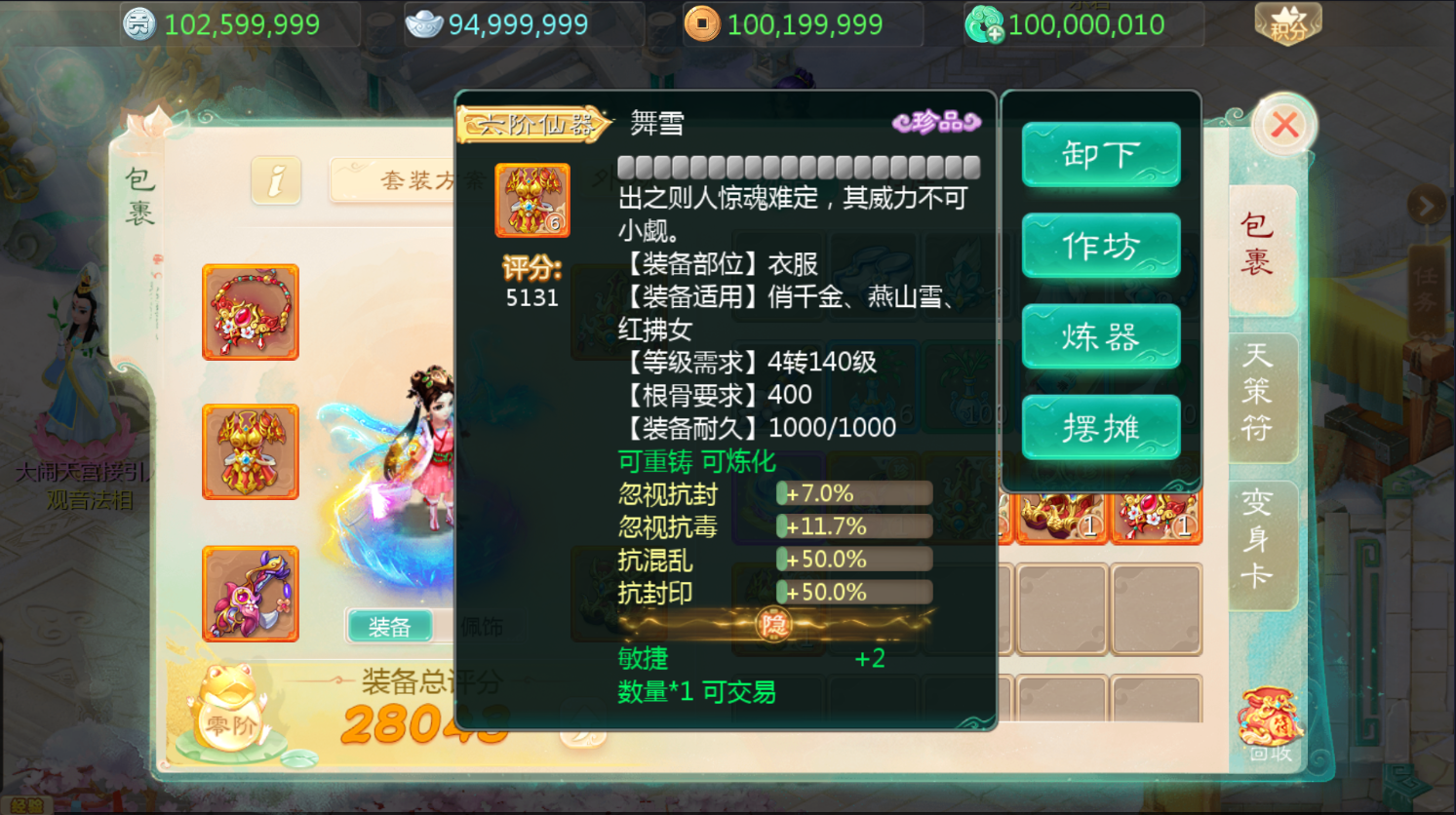 26.所有仙器装备调整佩戴要求