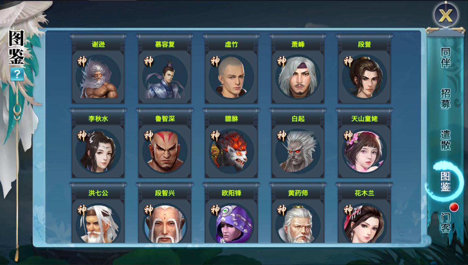2.添加【无崖子、天山童姥、白起、貔貅、鲁智深、李秋水、萧峰、段誉、慕容复、虚竹、谢逊、黄药师、欧阳锋、段智兴、洪七公】 15个神级同伴(本命武器与门客),并添加相应的组合属性,可入住家园