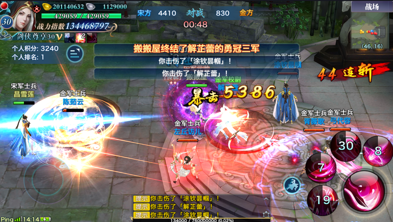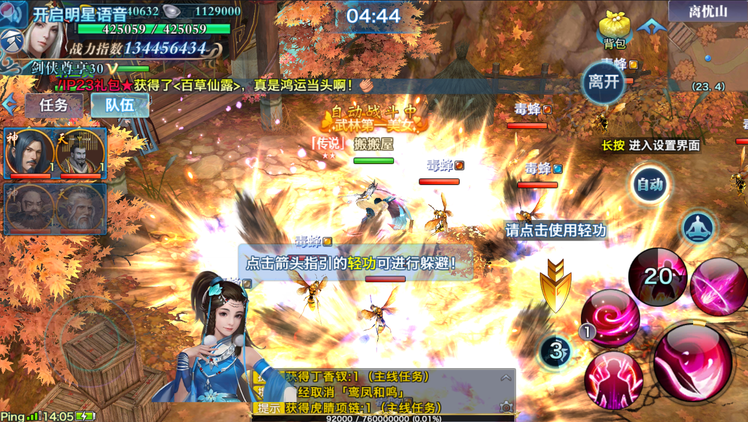 1.新增【天王、峨眉、桃花、逍遥、天忍、少林、翠烟、昆仑、唐门、武当、丐帮】全屏技能,技能华丽,伤害可观
