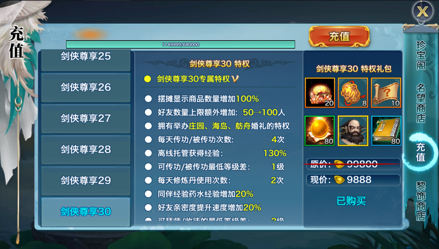9.增强武当4技能“人剑合一”施放距离由7.5米提升30米