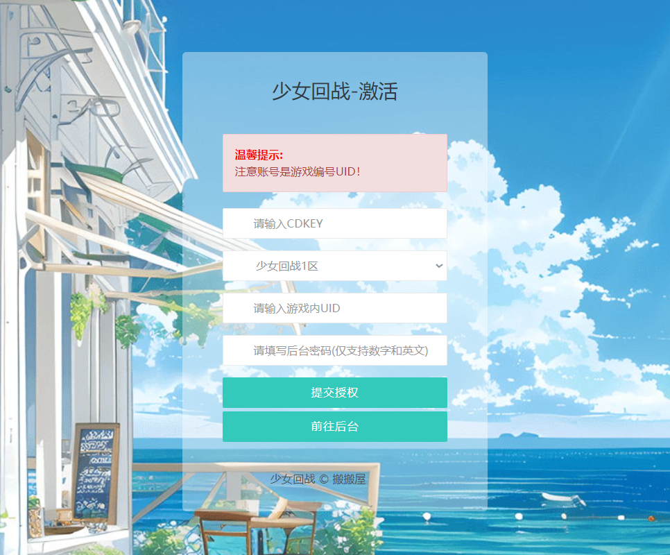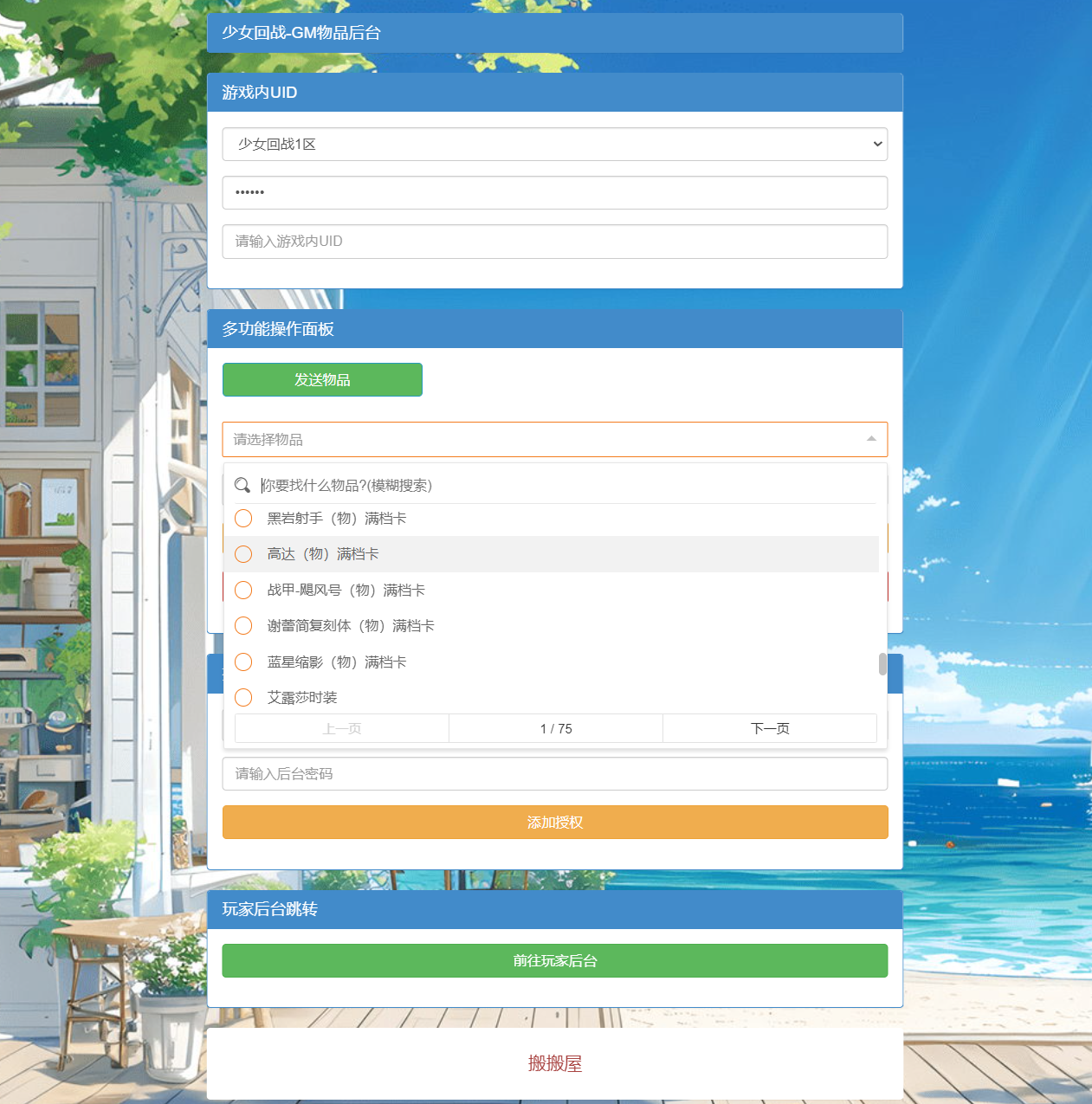 搬搬屋 定制后台 少女回战-CDK账号授权后台+GM授权后台+使用教程 https://www.game885.cn/84517/%e5%ae%9a%e5%88%b6%e5%90%8e%e5%8f%b0/