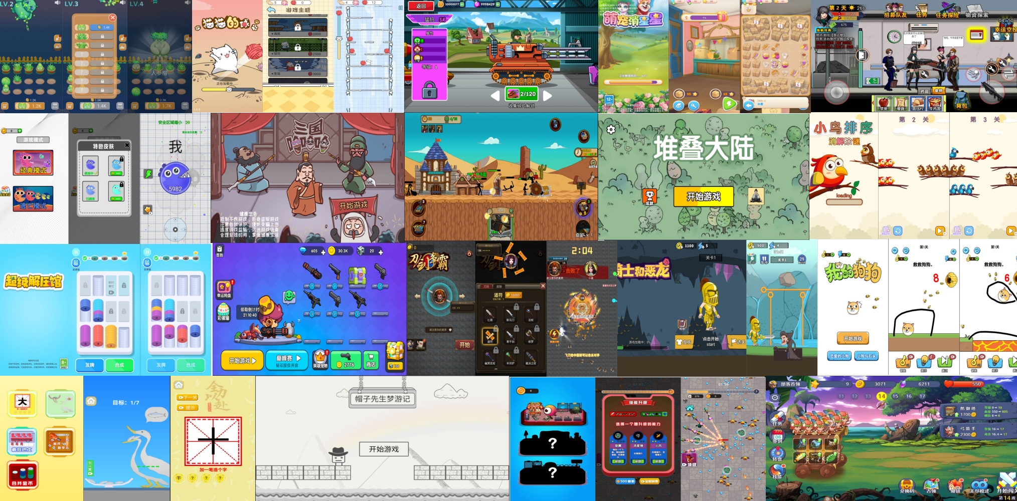 防御塔大作战,火柴人战争战略版,功夫火柴人,公交上车,三国哈哈哈,我就要吃鸡,帽子先生梦游记,小鸟排序,射击特工队,救救狗狗,全民摆地摊,刀剑争霸,登山坦克,堆叠大陆,骑士和恶龙,贪吃豆豆,末日生存笔记,房子改造合成,花朵合成