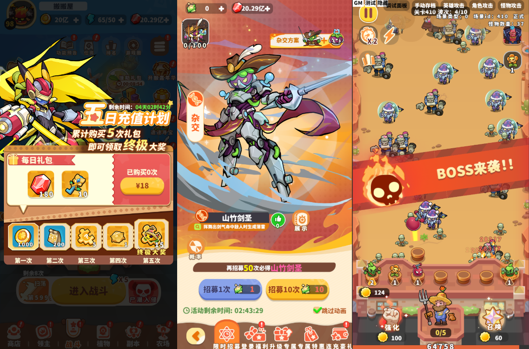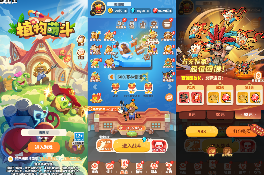 搬搬屋 H5/页游源码 三网H5塔防养成策略游戏【植物萌斗H5多区跨服代金券内购版】最新整理Linux手工服务端+全套源码+GM授权后台+CDK玩家后台+详细搭建教程 https://www.game885.cn/91993/yxym/h5yx/